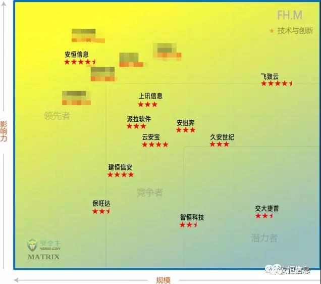 5月21日,國內(nèi)知名安全行業(yè)媒體安全牛發(fā)布了《中國網(wǎng)絡(luò)安全細(xì)分領(lǐng)域矩陣圖》(Matrix 2019.05),在堡壘機(jī)細(xì)分領(lǐng)域,安恒信息堡壘機(jī)以規(guī)模和技術(shù)創(chuàng)新力第一,入選國內(nèi)堡壘機(jī)第一梯隊(duì)廠商。