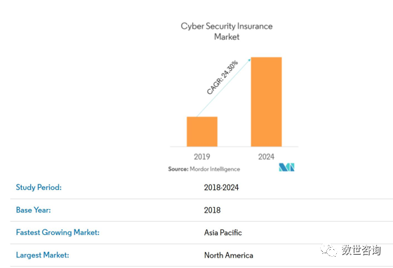 ?由于遭遇網(wǎng)絡(luò)攻擊的不可避免性,網(wǎng)絡(luò)安全保險(xiǎn)業(yè)務(wù)開始明顯提升。據(jù)Mordor Intelligence統(tǒng)計(jì),2018年網(wǎng)絡(luò)安全保險(xiǎn)市場(chǎng)規(guī)模達(dá)到54.8億美元,并在5年內(nèi)保持24.3%的復(fù)合增長(zhǎng)率,于2024年達(dá)到207.2億美元的市場(chǎng)規(guī)模。
