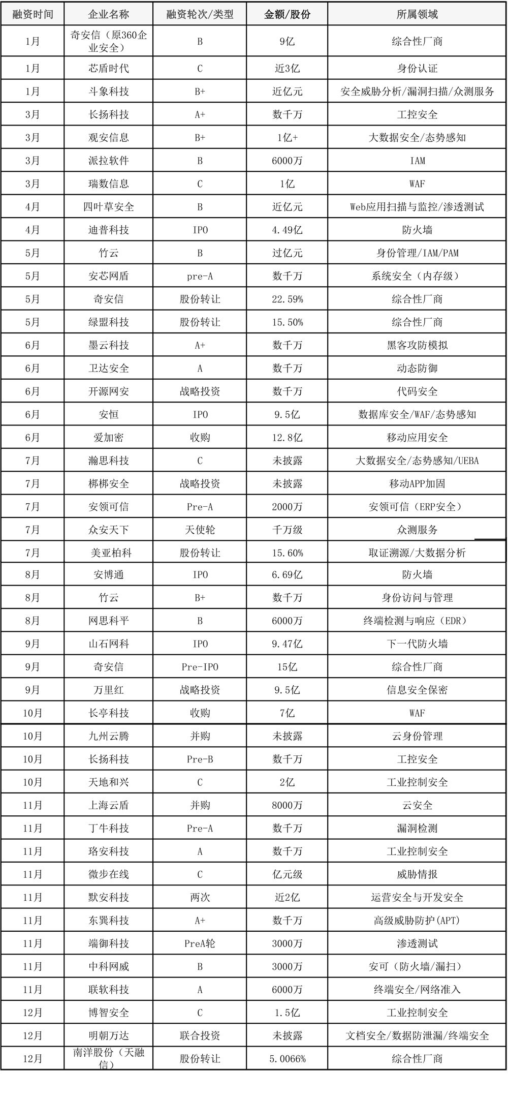 2019年國(guó)內(nèi)安全公司融資并購一覽