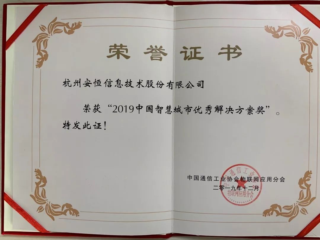 2019年12月20日,由中國通信工業(yè)協(xié)會指導、中國通信工業(yè)協(xié)會物聯(lián)網應用分會主辦,中國智慧城市規(guī)劃與建設推進聯(lián)盟協(xié)辦的第十屆物聯(lián)網產業(yè)與智慧城市發(fā)展年會在北京隆重舉辦。大會設置2019年度“物聯(lián)巔峰·智慧盛典”頒獎典禮,安恒信息榮獲“2019中國智慧城市優(yōu)秀解決方案獎”。