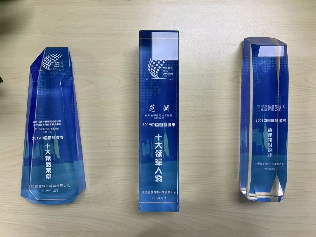 大會同時舉辦“第三屆中國智慧城市頒獎禮”,安恒信息榮獲“2019中國智慧城市十大領軍人物獎”、“2019中國智慧城市百佳核心企業(yè)獎”、“2019中國智慧城市十大精品案例獎”。