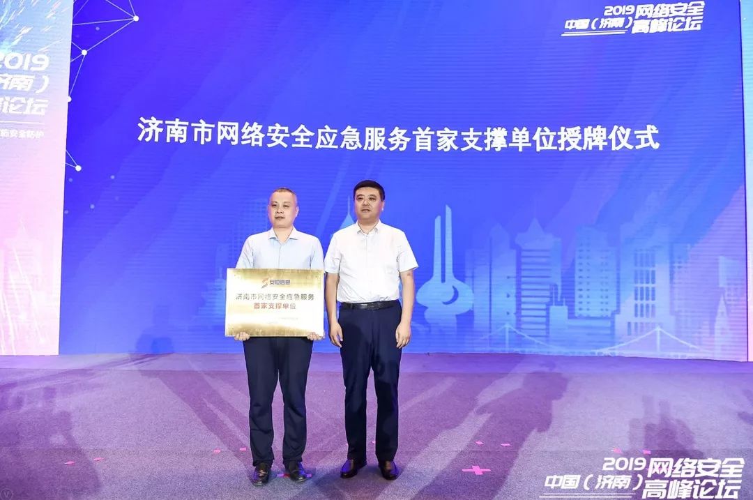 ? ? ? ?會(huì)上,中共濟(jì)南市委網(wǎng)信辦授予安恒信息“濟(jì)南市網(wǎng)絡(luò)安全應(yīng)急服務(wù)首家支撐單位”;還舉行了濟(jì)南市公安系統(tǒng)網(wǎng)絡(luò)與信息安全應(yīng)急技術(shù)支援中心、濟(jì)南市網(wǎng)絡(luò)安全保護(hù)聯(lián)盟的揭牌儀式。