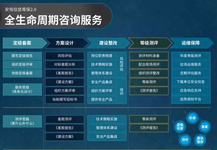 安恒信息提供等保安全合規(guī)咨詢服務(wù),幫助客戶快速、低成本、省心省力的完成等級保護定級備案、安全整改、等級測評和監(jiān)督檢查(根據(jù)等級保護工作的五個階段),發(fā)現(xiàn)信息系統(tǒng)和網(wǎng)絡(luò)中存在的安全風(fēng)險,建立完善的安全防護體系,輕松滿足等保合規(guī)和國家行業(yè)監(jiān)管要求,達到有效、合規(guī)的安全目的。