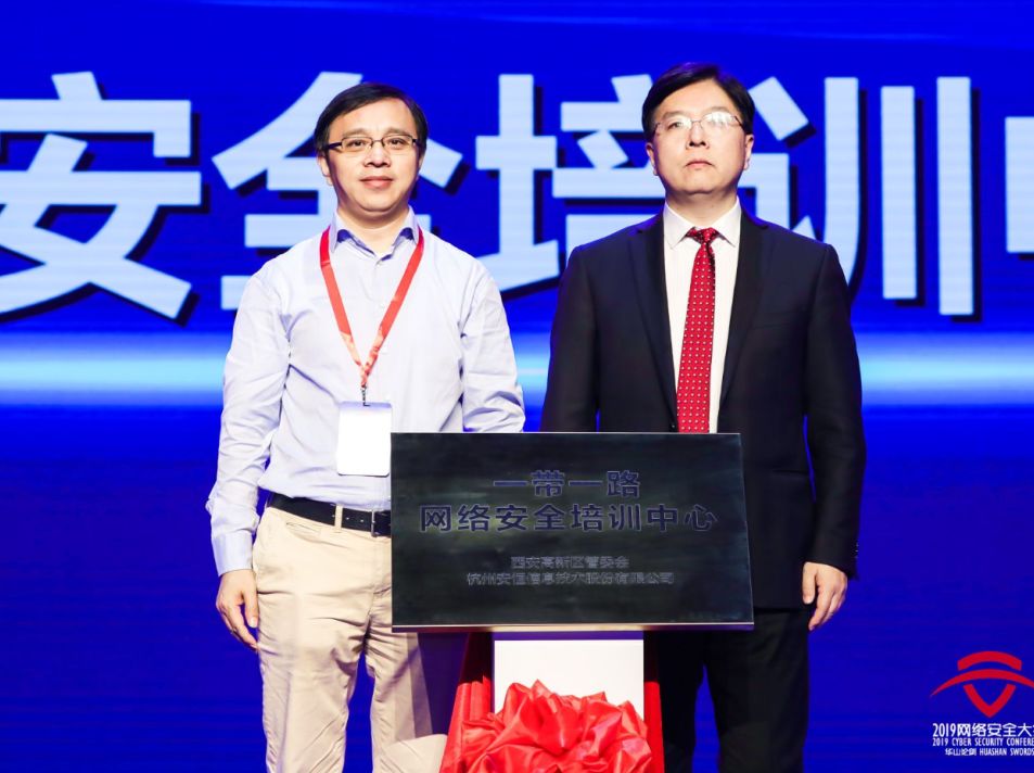 ? ? ? ?會(huì)上舉行西安電子科技大學(xué)與杭州安恒信息技術(shù)股份有限公司共建5G安全聯(lián)合創(chuàng)新研究中心簽約儀式;此后,西安高新區(qū)管委會(huì)副主任顧海文,杭州安恒信息技術(shù)股份有限公司首席安全官、高級(jí)副總裁劉志樂(lè)為“一帶一路”網(wǎng)絡(luò)安全培訓(xùn)中心共同揭牌。