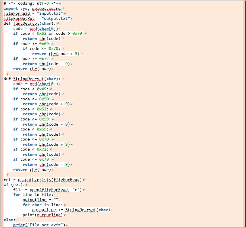 樣本使用了多種字符串加密手段,其中最主要的解密方法是部分字符位移,函數(shù)和部分字符串使用的解密秘鑰不同,但整體架構(gòu)一致,下面給出解密腳本: