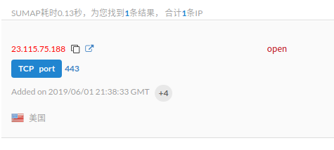 2019年9月美國宣布加強(qiáng)對(duì)朝鮮的制裁,本次分析的Lazarus樣本活躍時(shí)期初步推測在該輪制裁之前。通過網(wǎng)絡(luò)空間測繪探測技術(shù),我們了解到IP:23.115.75.188在2019年6月1日開放過443端口: