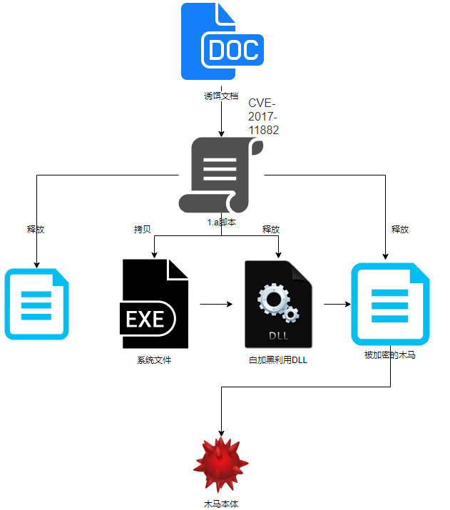 1、誘餌文檔使用CVE-2017-11882執(zhí)行釋放到%temp%路徑下1.a腳本;