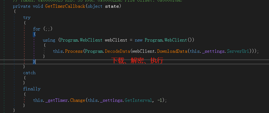 DLL功能為解密同目錄下的tmp后綴文件并執(zhí)行: