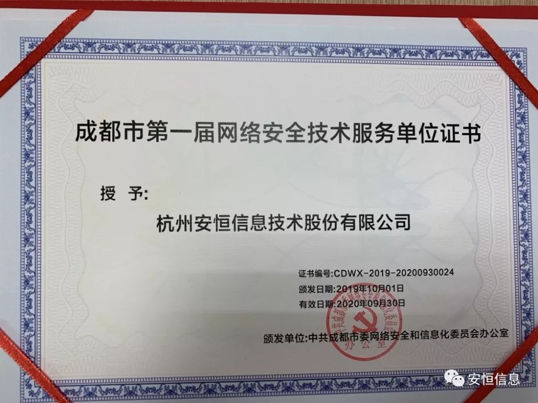 安恒信息入選成都市委網(wǎng)信辦第一屆網(wǎng)絡(luò)安全技術(shù)服務(wù)單位