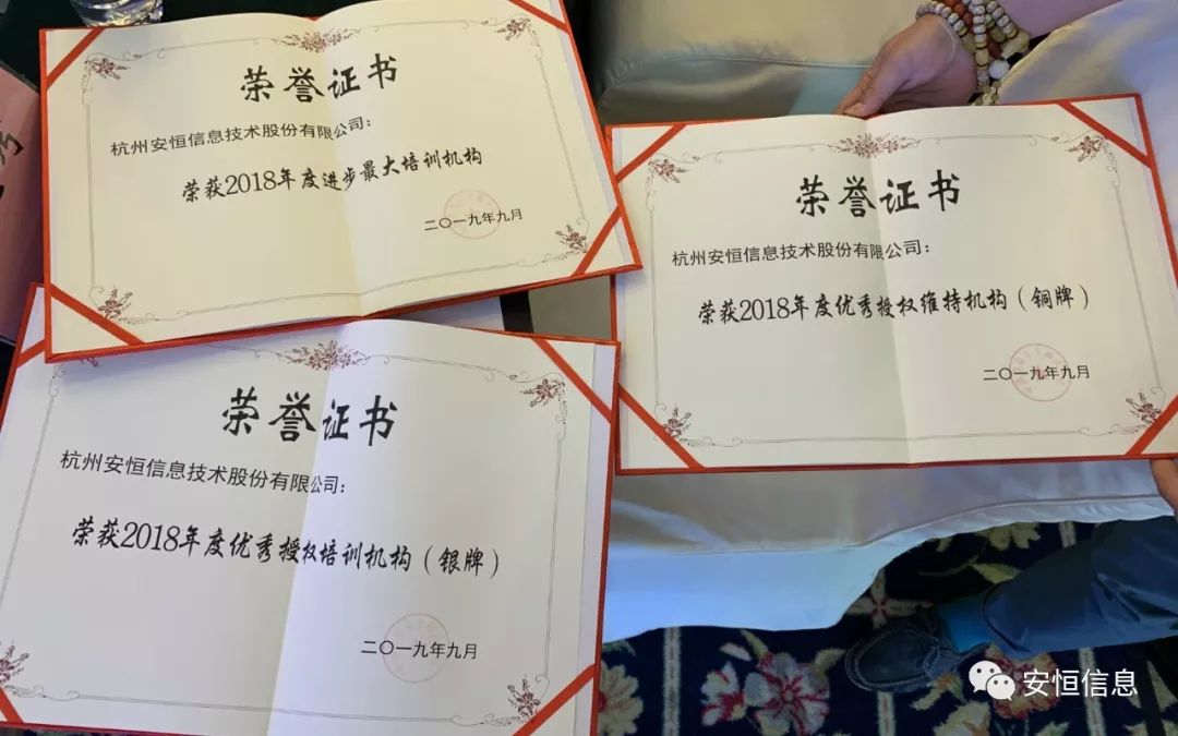 在中國信息安全測評中心的年會上,安恒信息收獲了2018年度進步最大培訓(xùn)機構(gòu)、2018年度優(yōu)秀授權(quán)培訓(xùn)機構(gòu)(銀牌)、2018年度優(yōu)秀授權(quán)維持機構(gòu)(銅牌)三項獎項!