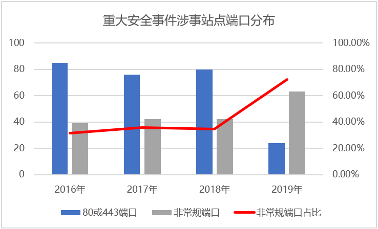 2019年以來(lái),非常規(guī)端口網(wǎng)站已經(jīng)成為黑客的主要目標(biāo),72.4%的重大安全事件均來(lái)自非常規(guī)端口網(wǎng)站。