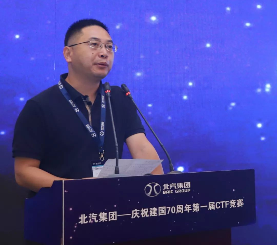 9月16日,北汽集團(tuán)“第一屆CTF競(jìng)賽”在北汽育采國(guó)際會(huì)議中心舉行。北京市國(guó)資委信息化處副處長(zhǎng)王敬,北汽集團(tuán)副總經(jīng)理、藍(lán)谷信息黨委書記、董事長(zhǎng)陳江等領(lǐng)導(dǎo)及相關(guān)人員出席本次活動(dòng)。