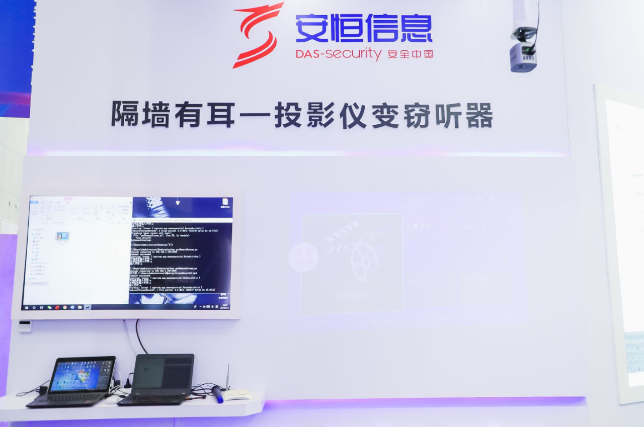 在安恒信息展臺,安恒信息技術(shù)人員將為觀眾演示“隔墻有耳”——投影儀變竊聽器技術(shù)。一臺普通的投影儀,在用戶正常使用過程中,安恒信息工作人員通過輸入攻擊腳本,模擬黑客采用滲透攻擊的方式,對投影儀進(jìn)行視頻竊取,達(dá)到遠(yuǎn)程監(jiān)聽的效果。