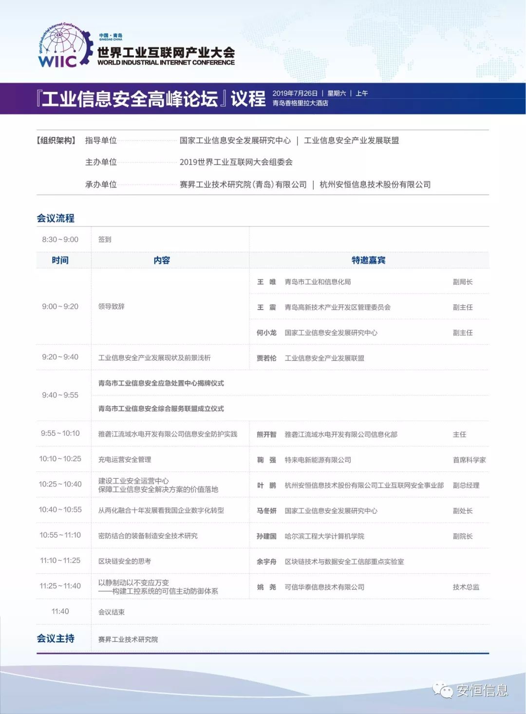邀請函 | 2019世界工業(yè)互聯(lián)網(wǎng)產(chǎn)業(yè)大會(huì)工業(yè)信息安全高峰論壇即將召開,你來不來?!