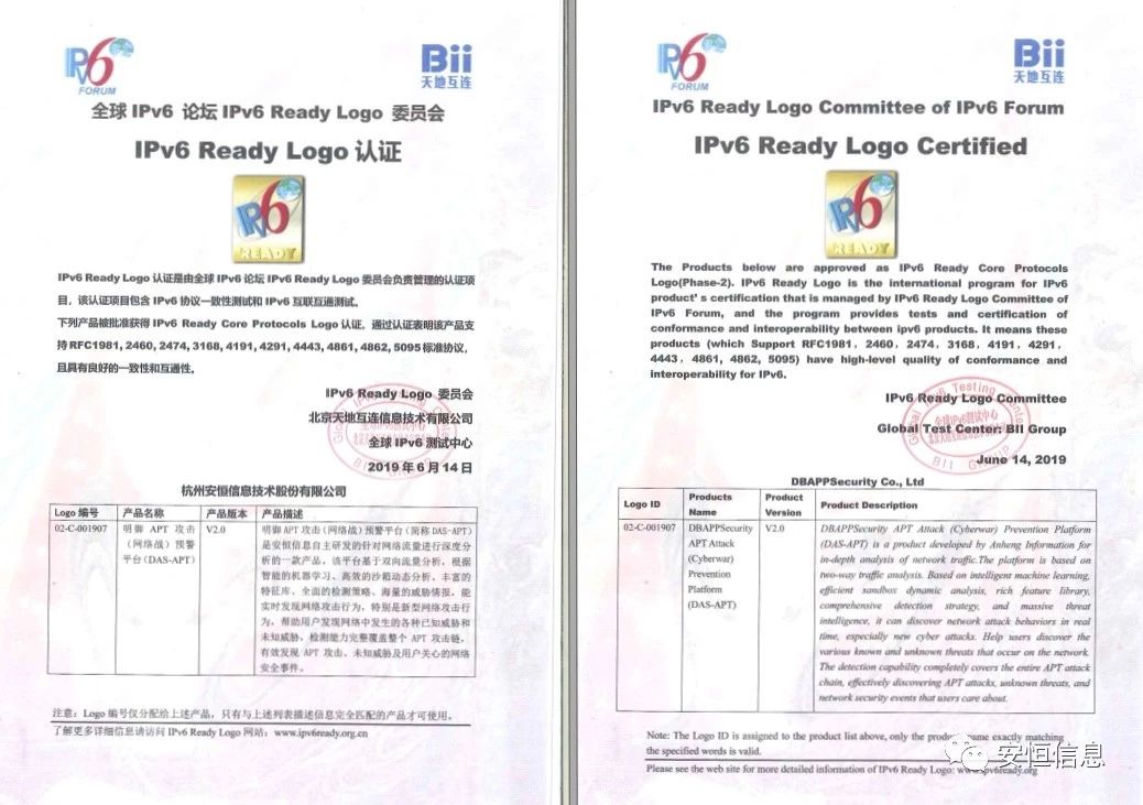 官宣!安恒信息明御APT攻擊(網(wǎng)絡(luò)戰(zhàn))預(yù)警平臺(tái)正式通過IPv6 Ready Logo認(rèn)證