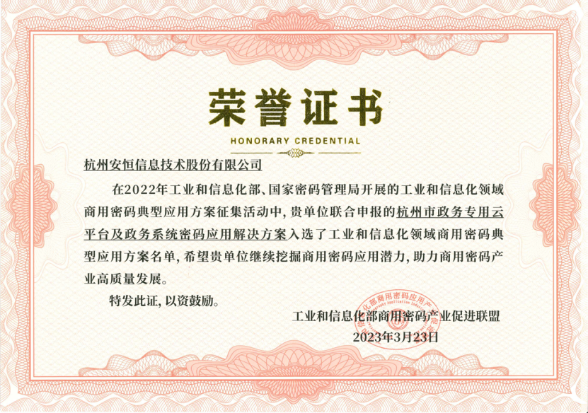 實(shí)力認(rèn)證!安恒信息入選工信部商用密碼典型應(yīng)用方案名單