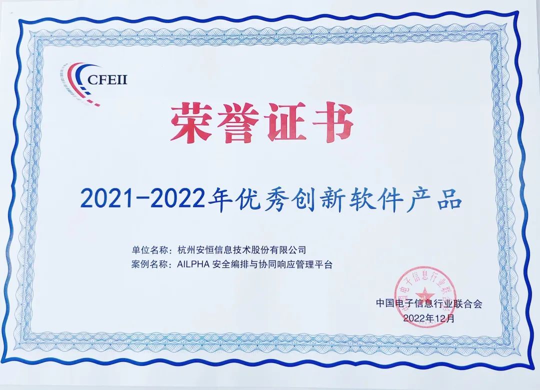 4月15日,首屆中國軟件創(chuàng)新發(fā)展大會在武漢召開。安恒信息受邀出席大會,并榮獲“2022年軟件和信息技術(shù)服務(wù)名牌企業(yè)”“2021-2022年優(yōu)秀創(chuàng)新軟件產(chǎn)品”兩項榮譽。