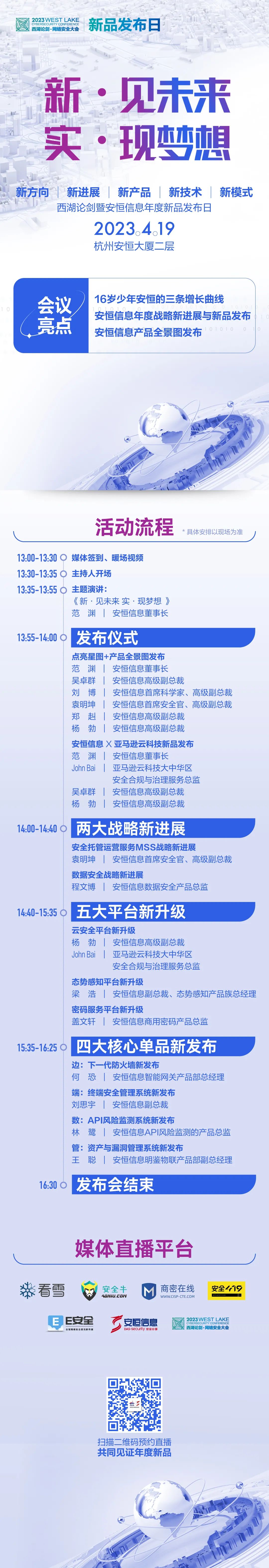 議程發(fā)布|下午13點(diǎn),西湖論劍暨安恒信息年度新品發(fā)布會不見不散