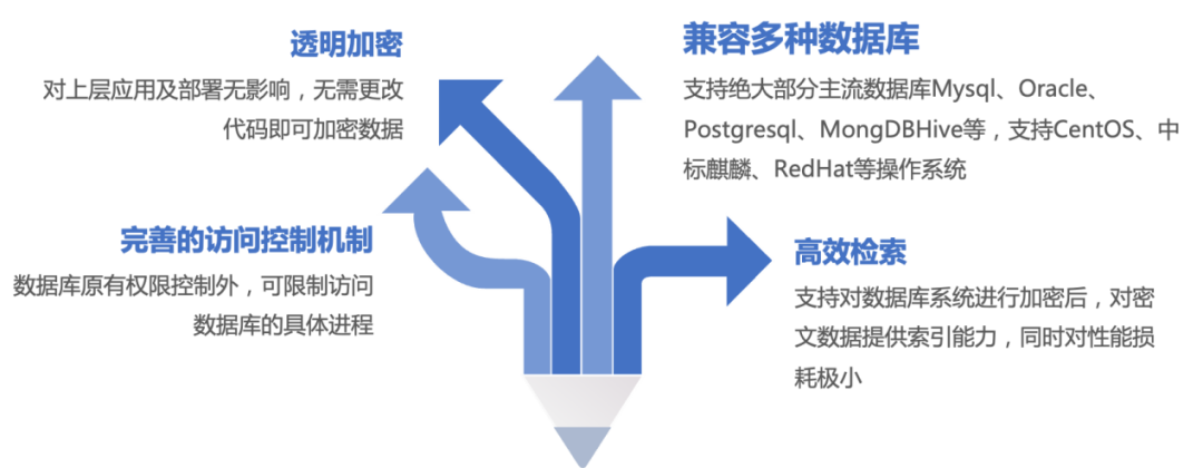數(shù)據(jù)庫透明加密系統(tǒng)通過將要加密的數(shù)據(jù)表的數(shù)據(jù)存儲(chǔ)路徑配置在具備加解密功能的數(shù)據(jù)庫加密軟件中,在設(shè)備上寫入數(shù)據(jù)時(shí),加密軟件將設(shè)備的寫入數(shù)據(jù)第一時(shí)間加密后將數(shù)據(jù)以密文形式寫入物理設(shè)備,讀出數(shù)據(jù)時(shí)也需要先從物理設(shè)備讀出密文然后解密返回給上層調(diào)用方。上層應(yīng)用訪問過程全透明,用戶系統(tǒng)無需做任何改動(dòng)。
