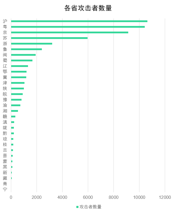 圖6 各省攻擊者郵箱賬號(hào)數(shù)量