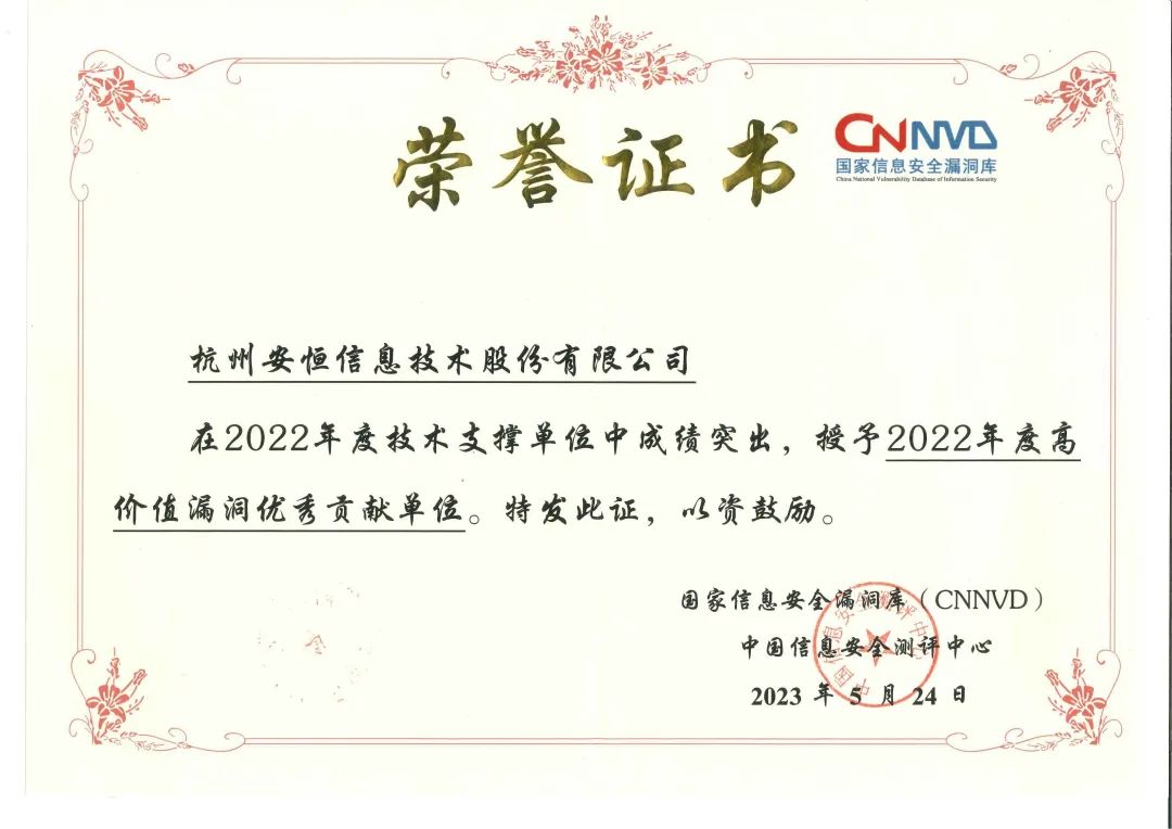 大滿貫!安恒信息獲CNNVD2022年度五項(xiàng)殊榮