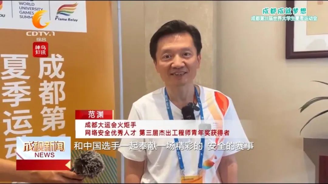7月26日,成都大運(yùn)會(huì)火炬?zhèn)鬟f迎來最后一個(gè)傳遞日?!叭鼗稹蓖緩轿髂辖煌ù髮W(xué)、成都理工大學(xué)、成都大學(xué)三所高校后,傳遞至賽事主場(chǎng)館所在的東安湖體育公園,并舉行隆重的收火儀式。安恒信息董事長范淵作為第104棒火炬手在東安湖體育公園進(jìn)行接棒傳遞。