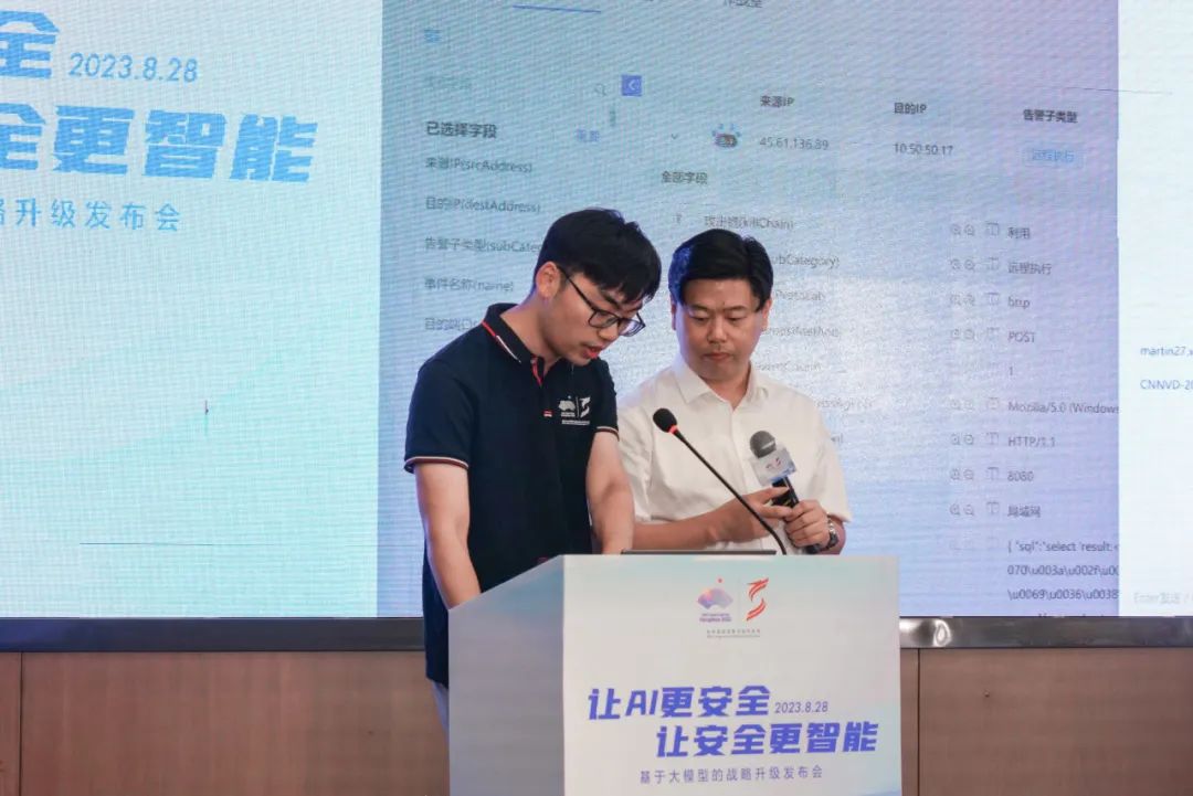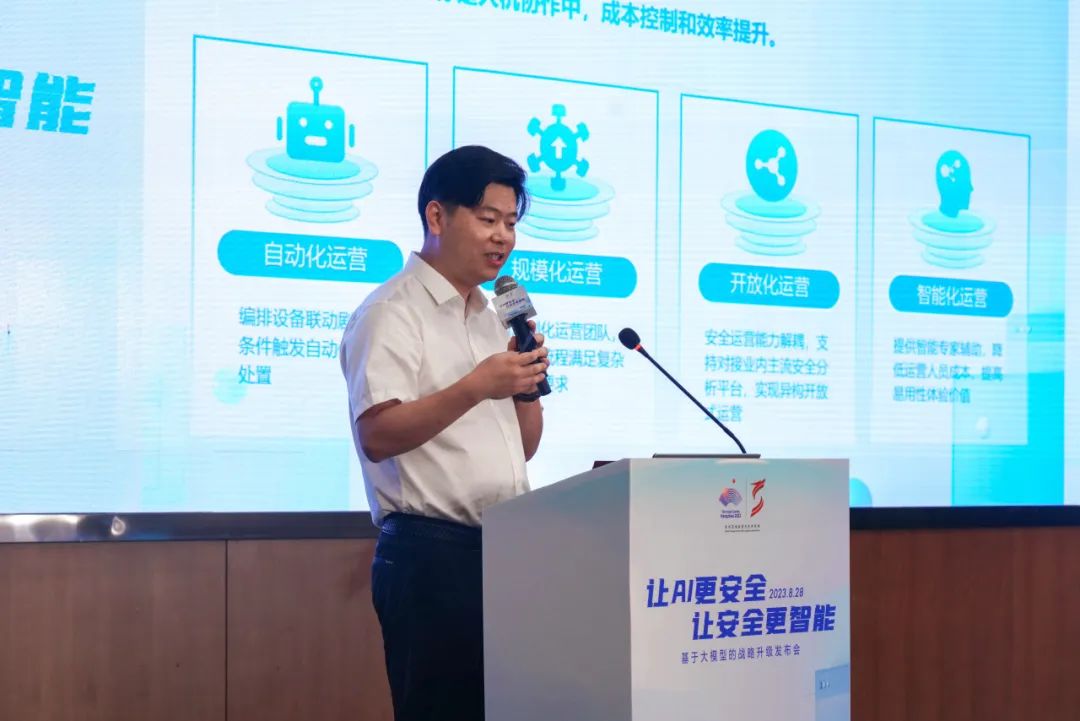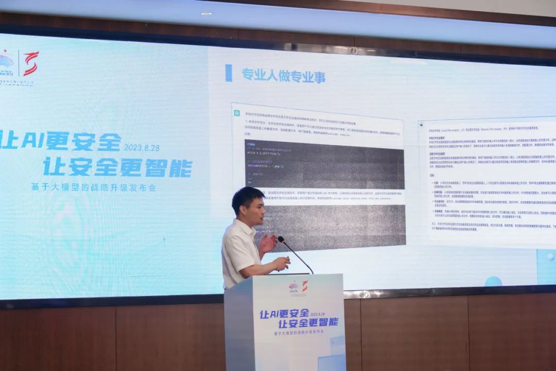 8月28日,讓AI更安全,讓安全更智能——基于大模型的戰(zhàn)略升級(jí)發(fā)布會(huì)在安恒大廈舉辦,恒腦·安全垂域大模型首次公開亮相,基于安全垂域大模型的安全運(yùn)營(yíng)平臺(tái)全新升級(jí)發(fā)布。