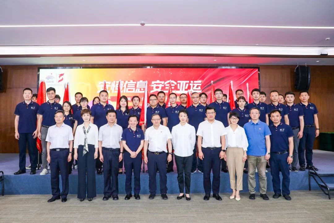 9月3日,杭州亞運(yùn)會(huì)開幕倒計(jì)時(shí)20天,亞運(yùn)網(wǎng)絡(luò)安全衛(wèi)士誓師出征儀式在安恒大廈舉行,在中國(guó)工程院院士方濱興,杭州亞組委執(zhí)行秘書長(zhǎng)、杭州市副市長(zhǎng)陳衛(wèi)強(qiáng),國(guó)際奧委會(huì)委員、中國(guó)奧委會(huì)副主席、薩馬蘭奇基金會(huì)理事長(zhǎng)李玲蔚,杭州市公安局黨委委員、副局長(zhǎng)姚利民,杭州亞組委市場(chǎng)開發(fā)部副部長(zhǎng)杜夢(mèng)菲、杭州亞組委廣播電視和信息技術(shù)部副部長(zhǎng)張鴿,杭州亞組委信息技術(shù)部副部長(zhǎng)施雄偉,杭州高新區(qū)(濱江)管委會(huì)副主任、副區(qū)長(zhǎng)于林芳等領(lǐng)導(dǎo)嘉賓的見證下,安恒信息董事長(zhǎng)范淵發(fā)布亞運(yùn)網(wǎng)絡(luò)安??倓?dòng)員令,安恒信息全體“亞運(yùn)網(wǎng)絡(luò)安全衛(wèi)士”們共同莊嚴(yán)宣誓。