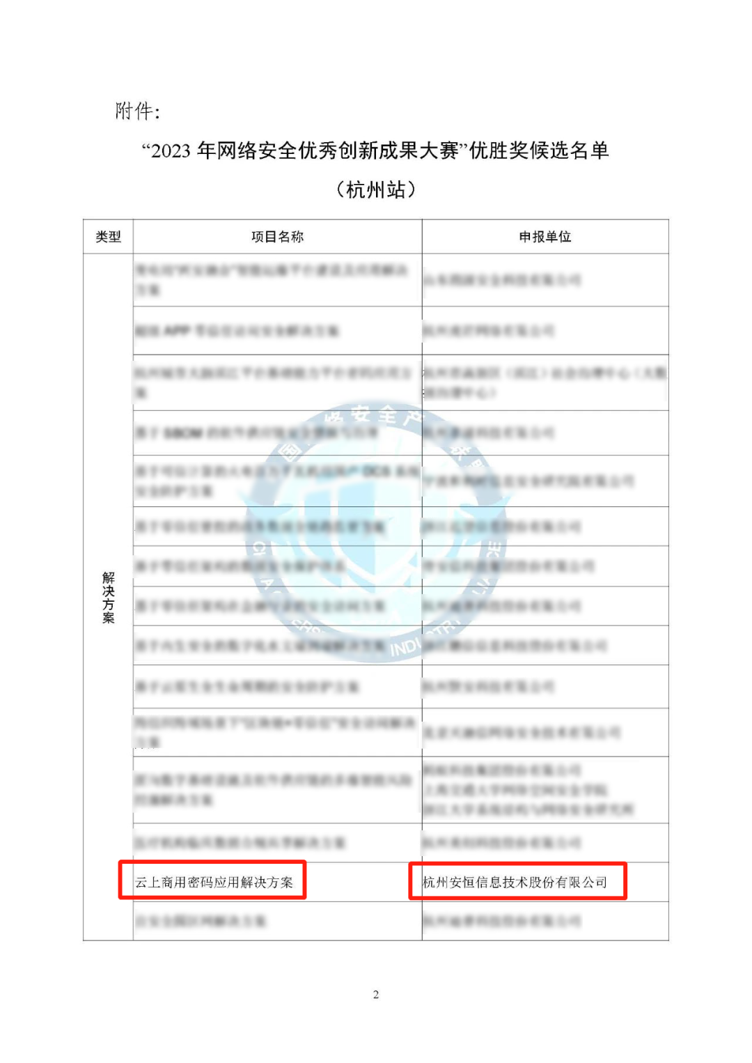 近日,“2023年網(wǎng)絡(luò)安全優(yōu)秀創(chuàng)新成果大賽—杭州分站賽”以及“黃鶴杯”網(wǎng)絡(luò)安全人才創(chuàng)新大賽—?jiǎng)?chuàng)新成果擂臺(tái)賽暨“2023年網(wǎng)絡(luò)安全優(yōu)秀創(chuàng)新成果大賽—武漢分站賽”成功舉辦。安恒信息所申報(bào)的兩大解決方案雙雙獲獎(jiǎng)。