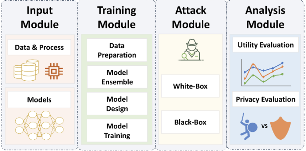 將差分隱私技術(shù)與機(jī)器學(xué)習(xí)技術(shù)融合的過程中,其中一個(gè)重要的考慮因素是隱私和模型可用性之間的平衡。添加過多的噪聲可能會(huì)導(dǎo)致模型準(zhǔn)確性顯著降低,而添加過少的噪聲可能無法提供足夠的隱私保證。為了在保護(hù)隱私的前提下盡可能少的損失性能,許多研究人員積極探索新技術(shù)和算法,以平衡隱私和模型性能。但是,這些研究是孤立的,不能準(zhǔn)確的衡量算法改進(jìn)在不同條件下的性能。更重要的是,缺乏全面的研究來比較這些差分隱私機(jī)器學(xué)習(xí)(Differential Privacy Machine Learning, DPML)算法的改進(jìn)在可用性、防御能力和通用性方面的表現(xiàn)。