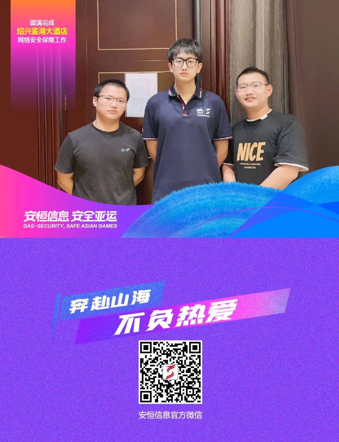 安恒信息,安全亞運(yùn)。盛事尚未落幕、網(wǎng)安仍在繼續(xù)。主辦城市杭州仍沐浴在賽事歡呼里,安恒信息也將始終保持高度專注,在最后時(shí)刻仍未曾有一絲懈怠,繼續(xù)肩負(fù)使命、履行承諾,自始至終守護(hù)杭州亞運(yùn)會(huì)的網(wǎng)絡(luò)安全。