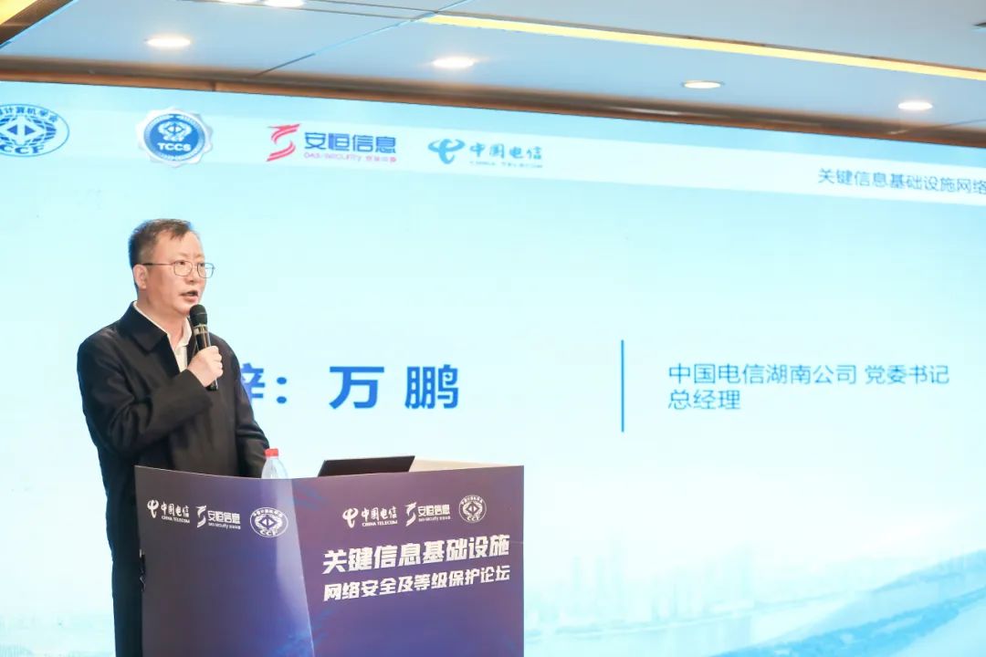 關(guān)鍵信息基礎(chǔ)設(shè)施網(wǎng)絡(luò)安全及等級保護(hù)論壇上,公安部第一研究所副所長、CCF安全專業(yè)委會主任于銳,中國電信湖南公司黨委書記、總經(jīng)理萬鵬,CCF安全專業(yè)委員會常務(wù)委員、安恒信息董事長范淵,公安部關(guān)鍵信息基礎(chǔ)設(shè)施保護(hù)中心副研究員李秋香,中國電信集團(tuán)網(wǎng)絡(luò)和信息安全管理部總經(jīng)理谷紅勛,公安部第三研究所密碼技術(shù)處總工倪力舜,民航信息安全管理與測評中心常務(wù)副主任顧兆軍等領(lǐng)導(dǎo)和專家出席會議,參會嘉賓共同探討“筑牢關(guān)鍵信息基礎(chǔ)設(shè)施網(wǎng)絡(luò)安全屏障”。