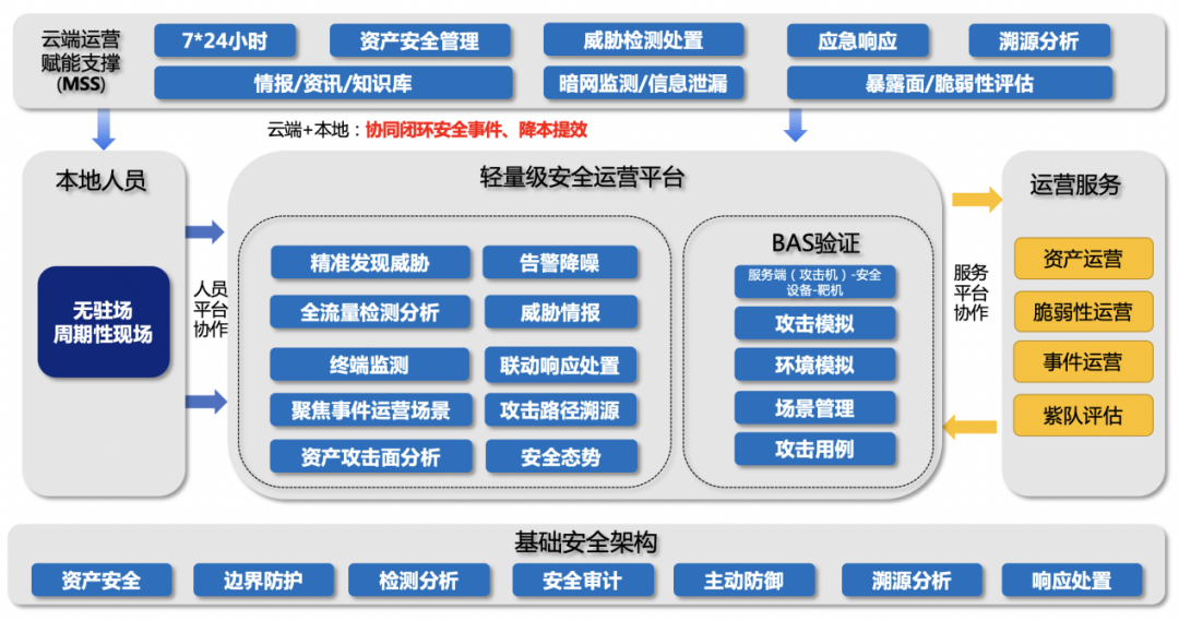 在10月份即將發(fā)布版本中對(duì)安全事件又做了升華,基于對(duì)告警和事件的深入理解,總結(jié)了日常運(yùn)營(yíng)模式下的事件處置閉環(huán)模型,在極大提升安全運(yùn)營(yíng)效率的同時(shí)做到事件處置不遺漏,但每天僅需要處置幾十條事件。平臺(tái)自身的“0腳本”聯(lián)動(dòng)處置能力可以實(shí)現(xiàn)快速封堵攻擊。另外,AXDR還可以搭配輕量化周期性現(xiàn)場(chǎng)服務(wù),進(jìn)行告警分析梳理,疑難雜癥診療等服務(wù),形成高性?xún)r(jià)比的“輕運(yùn)營(yíng)”服務(wù)模式。