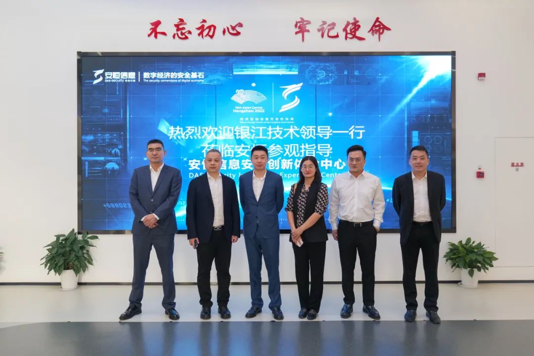 在簽約儀式前,銀江技術領導一行蒞臨安恒信息安全創(chuàng)新體驗中心進行參觀,更直觀、全面地了解安恒信息在智慧城市、數(shù)字安全、大模型等領域的解決方案與過往成果。