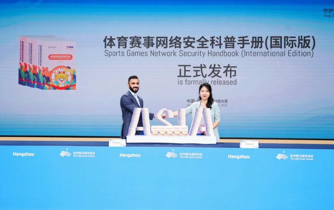 簽約儀式上,范淵和安恒信息高級副總裁、首席安全官袁明坤獲頒亞奧理事會網(wǎng)絡(luò)安全專家聘書,雙方共同啟動了“亞洲體育賽事網(wǎng)絡(luò)安全保障計劃”,并共同發(fā)布了《體育賽事網(wǎng)絡(luò)安全科普手冊(國際版)》。
