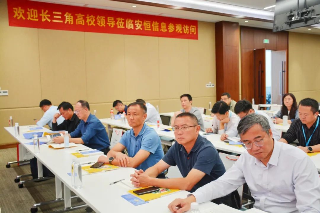 上午10:30,在高級副總裁、首席人力官馮旭杭,高級副總裁、首席人才官苗春雨,副總裁、安恒團委副書記吳澄的陪同下,長三角高校就業(yè)部門負(fù)責(zé)人等一行參觀了安恒安全創(chuàng)新體驗中心。