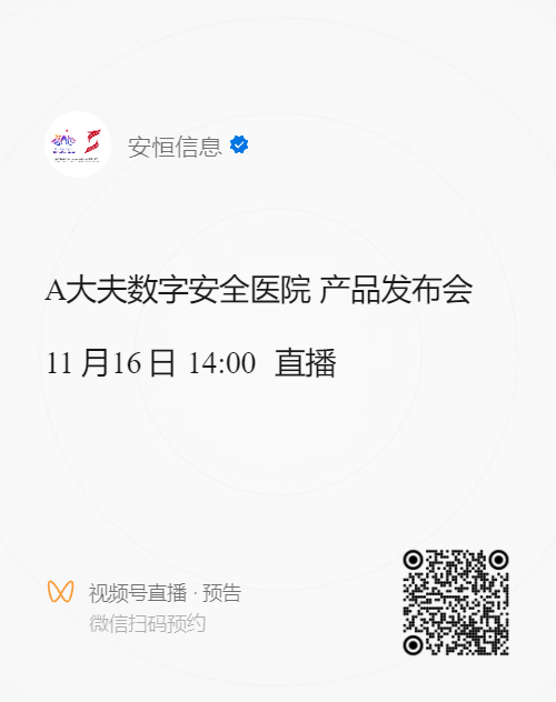 11月8日,由中國(guó)網(wǎng)絡(luò)空間安全協(xié)會(huì)主持的新產(chǎn)品新技術(shù)在烏鎮(zhèn)互聯(lián)網(wǎng)國(guó)際會(huì)展中心成功舉辦。會(huì)上,安恒信息正式發(fā)布“A大夫數(shù)字安全醫(yī)院”全新產(chǎn)品。