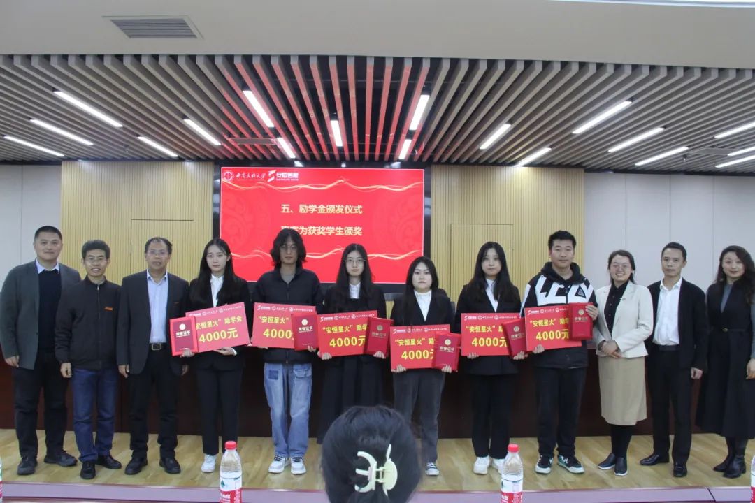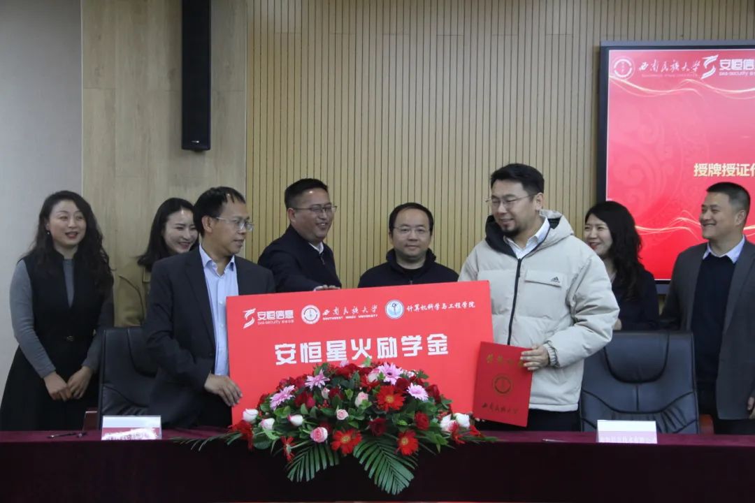 隨后,安恒信息高級(jí)副總裁、成都市安恒公益慈善基金會(huì)副理事長(zhǎng)段平霞與西南民族大學(xué)國(guó)內(nèi)合作處副處長(zhǎng)楊麗正式簽約,王瑞與張建華共同完成授牌,標(biāo)志著安恒星火勵(lì)學(xué)金正式落地西南民族大學(xué)。最后,與會(huì)嘉賓共同見(jiàn)證現(xiàn)場(chǎng)頒獎(jiǎng),為優(yōu)秀學(xué)子頒發(fā)勵(lì)學(xué)金,助力夢(mèng)想發(fā)芽。