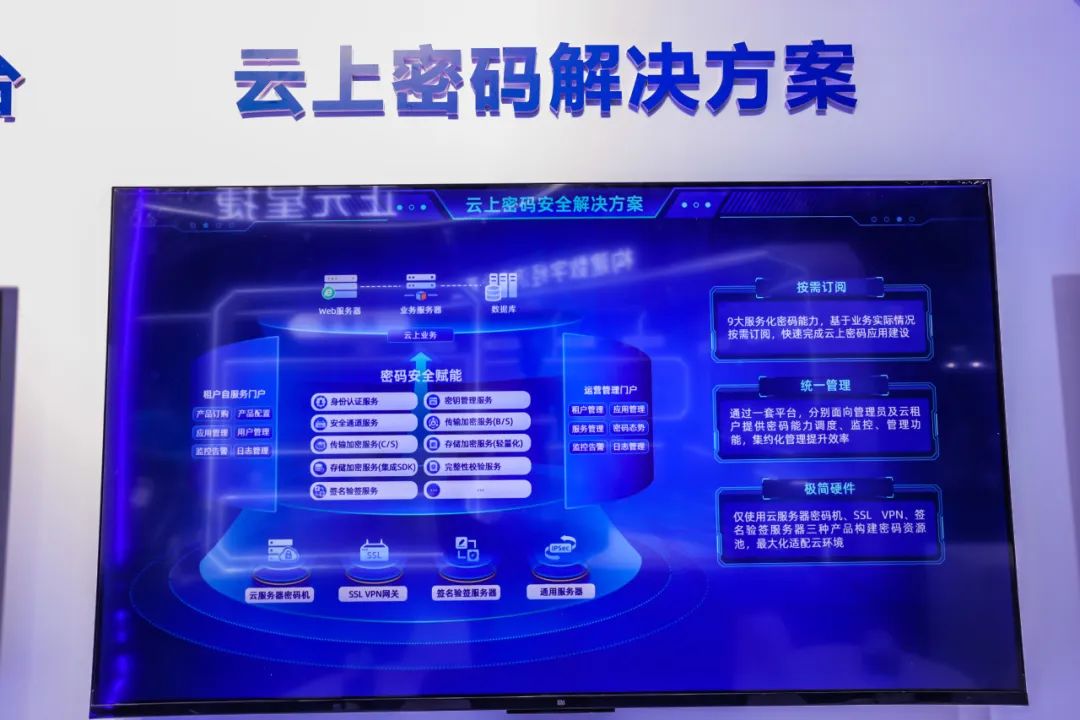 現(xiàn)場,安恒信息展示了密碼應(yīng)用安全監(jiān)管平臺、云上密碼解決方案、透明加密方案、密評工具箱等商用密碼產(chǎn)品與解決方案,集中展示了安恒信息在商用密碼應(yīng)用建設(shè)與監(jiān)管的科技成果。