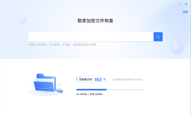 ■ 文件備份恢復(fù):勒索軟件試圖加密某些文件時,勒索加密文件恢復(fù)驅(qū)動可以監(jiān)控到該軟件對文件的可疑修改操作,在勒索軟件寫入之前,搶先備份該文件。備份完成后,用戶可使用安全工具中的勒索加密文件恢復(fù)功能,輸入文件名稱,文件路徑,擴展名,或者被病毒查殺功能檢出的勒索軟件進程名,搜索出備份的文件,進而恢復(fù)原文件。