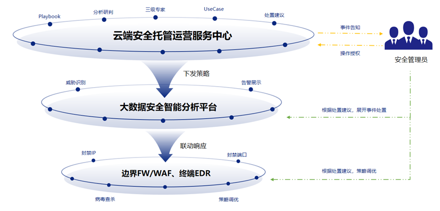 ◆ 基于攻擊面治理勒索防護,從海量告警事件分析研判出勒索病毒事件后,云端專家通過遠(yuǎn)程和現(xiàn)場支持的形式協(xié)助分析和協(xié)助處置。輸出處置建議,以及獲取授權(quán)后開展安全處置工作。