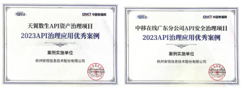 安恒信息兩大應用案例榮獲2023年API治理應用優(yōu)秀案例獎項