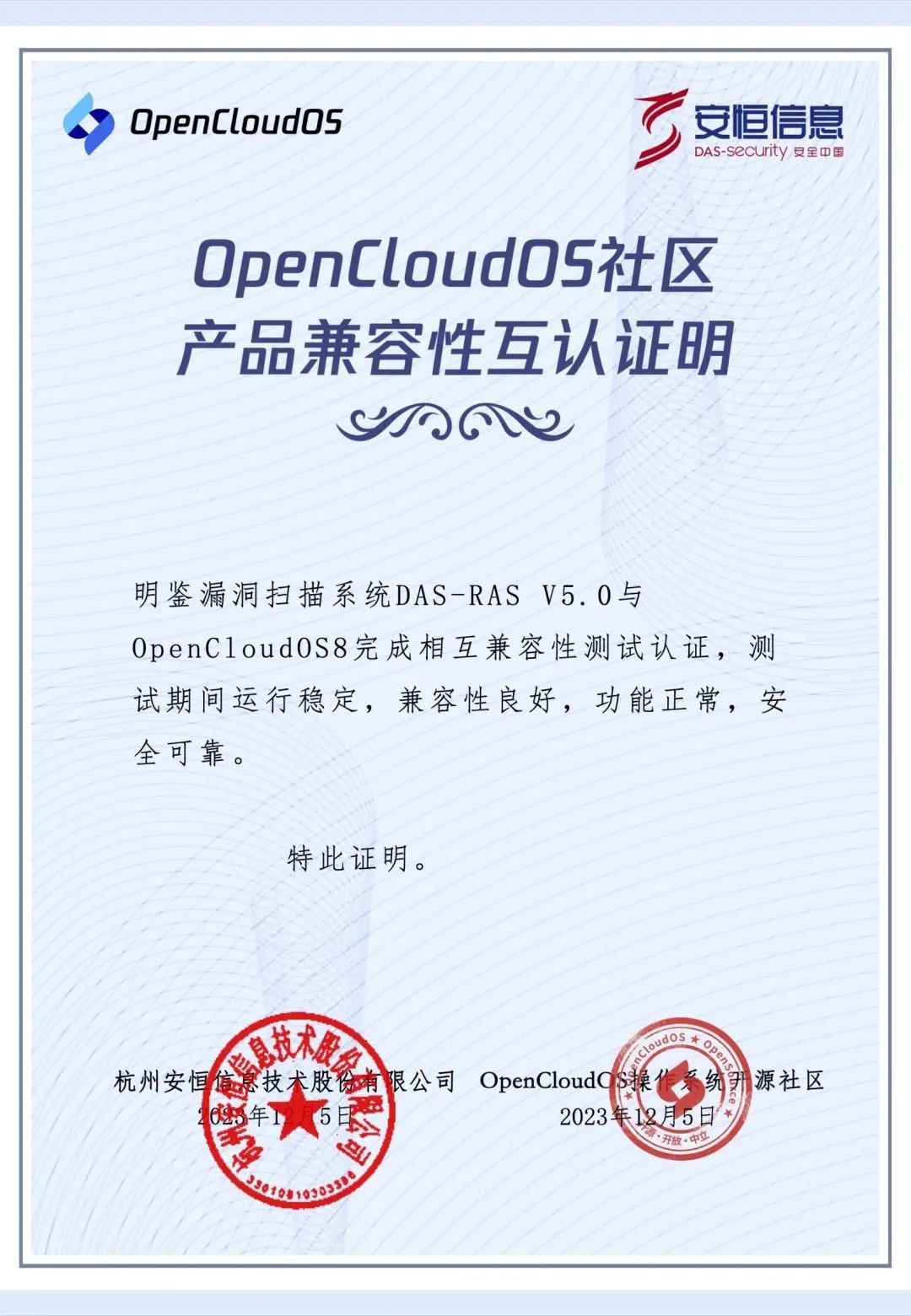 安恒信息加入 OpenCloudOS 社區(qū),完成技術(shù)兼容互認(rèn)證