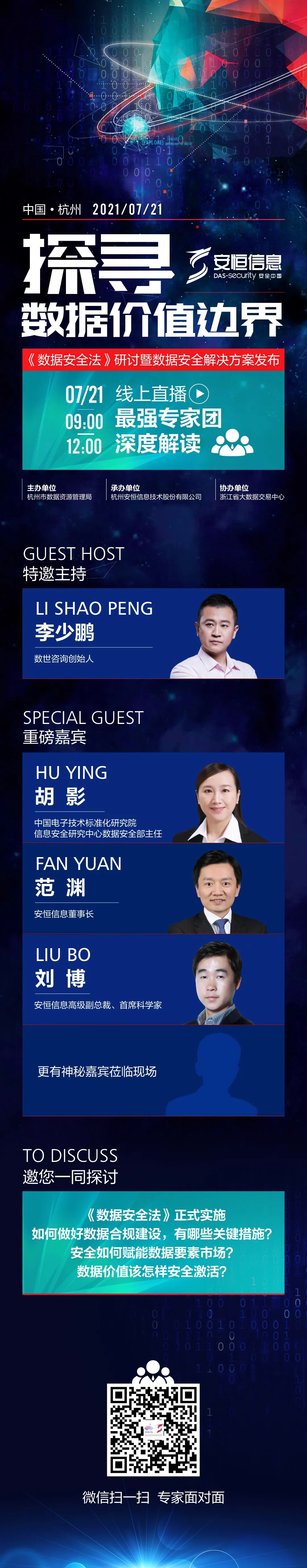 7.21見!安恒信息《數(shù)據(jù)安全法》研討暨數(shù)據(jù)安全解決方案發(fā)布會重磅揭幕