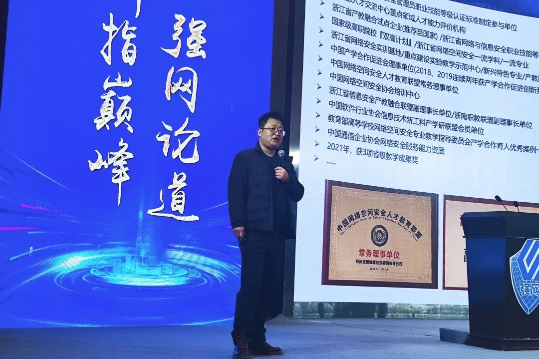 最后,苗春雨介紹了安恒信息在人才培養(yǎng)領(lǐng)域的卓越成果,圍繞“重保網(wǎng)絡(luò)安全衛(wèi)士”,安恒信息與浙江工業(yè)大學(xué)、杭州電子科技大學(xué)、成都信息工程大學(xué)等30余所院校完成重保培訓(xùn)合作,200余位高校學(xué)子通過(guò)培訓(xùn)參與重保工作。此外,安恒信息不僅注重產(chǎn)教融合,也深耕公安、軍隊(duì)、運(yùn)營(yíng)商、金融、交通等眾多行業(yè)的網(wǎng)安人才隊(duì)伍建設(shè),助力合作伙伴共同培養(yǎng)復(fù)合型網(wǎng)絡(luò)安全人才,推動(dòng)數(shù)字化建設(shè)安全發(fā)展。