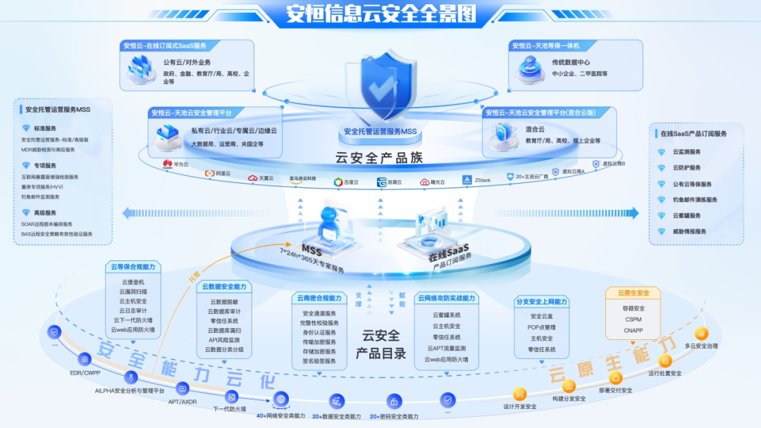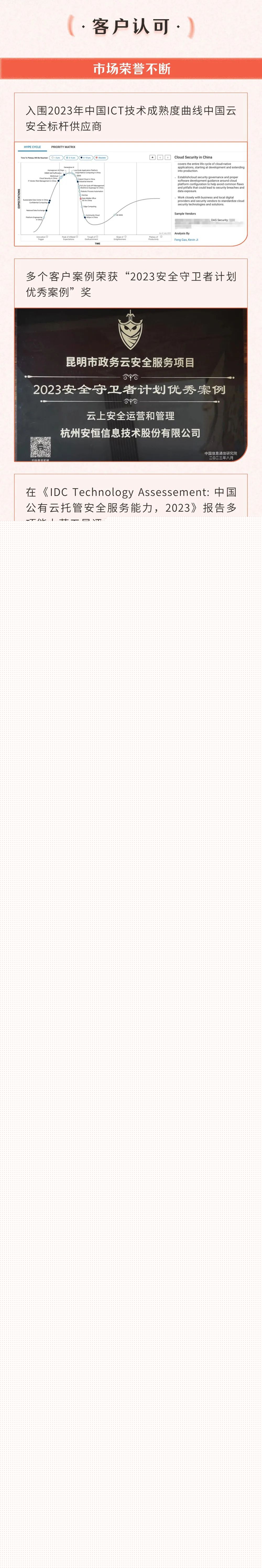 在數(shù)字經(jīng)濟時代下,隨著云計算、大數(shù)據(jù)等技術(shù)的廣泛應用,云計算已成為行業(yè)數(shù)字化轉(zhuǎn)型的核心基礎設施,云安全則是這一進程的關(guān)鍵支柱。2023安恒信息云安全版圖全面升級,以安全托管運營服務將能力、生態(tài)、行業(yè)相串聯(lián),為用戶提供更堅實的云安全保障,構(gòu)建出云上業(yè)務的最安全形態(tài)。