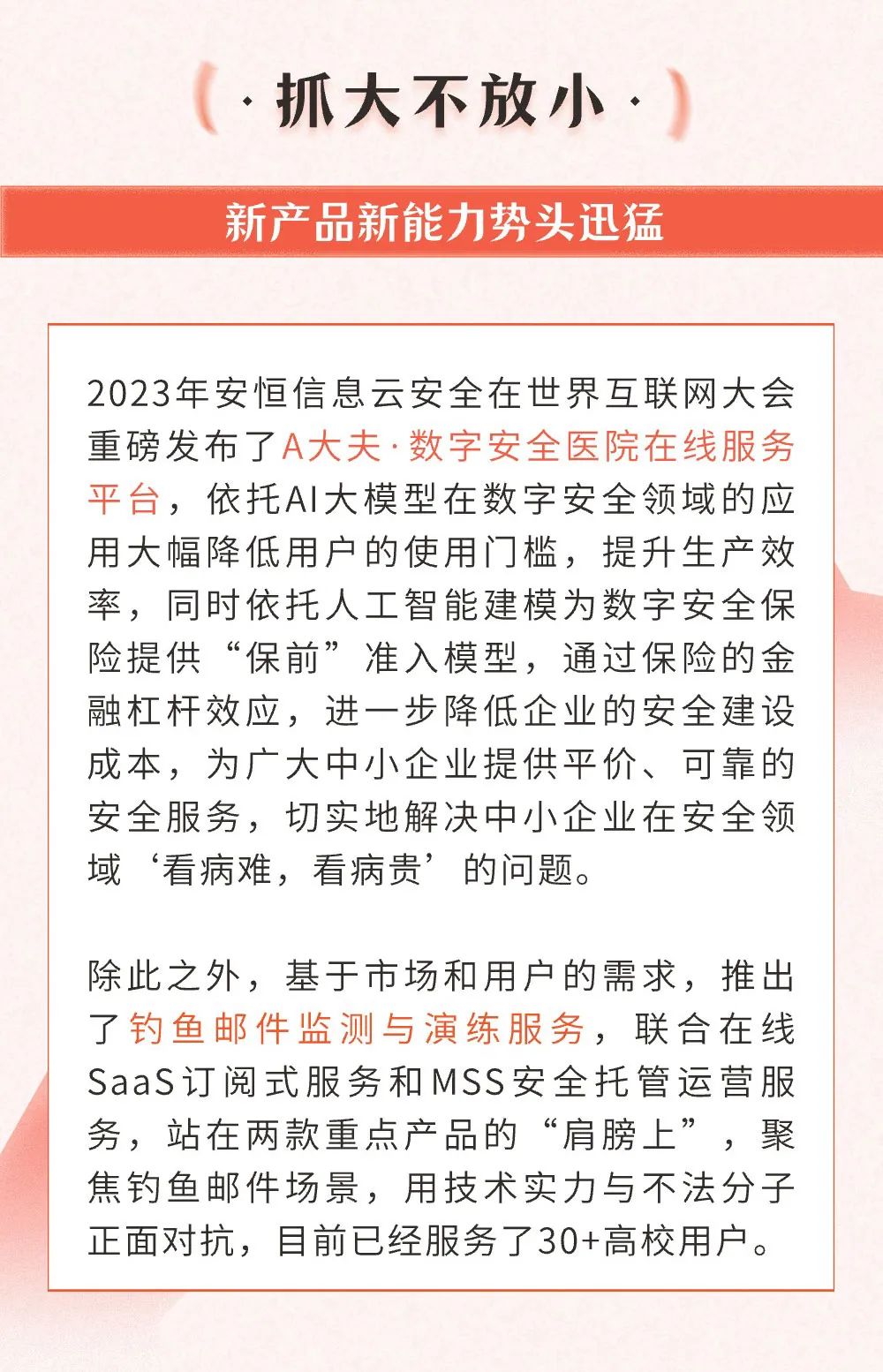 安恒信息云安全回首2023年的點點滴滴,圍繞產(chǎn)品能力、客戶認可和新方向把握,為這一年里奮斗的自己寫下評價:
