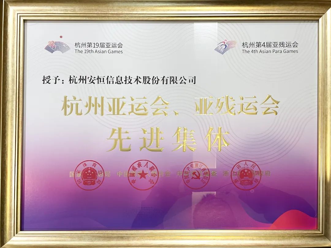 再獲部委級表彰!安恒信息榮獲“杭州亞運會、亞殘運會先進集體”稱號