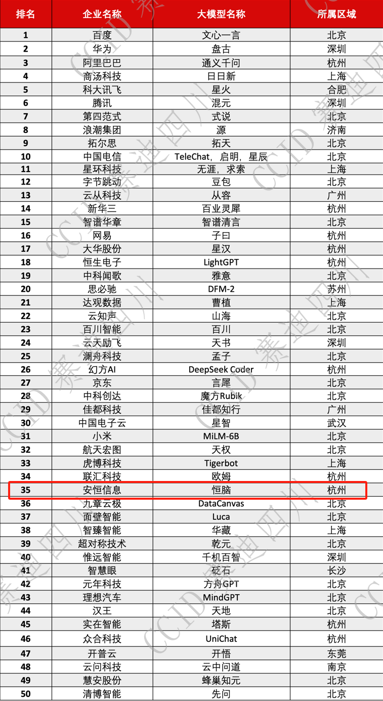 “安恒恒腦”入選中國AI大模型綜合競(jìng)爭力50強(qiáng)